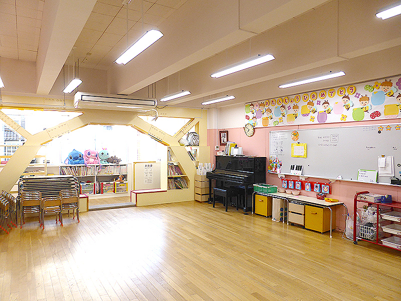 本園は平成22年に園舎耐震補強工事を行っています。安全な環境を整え、安心してお子様をお預けいただける施設です。近年ではエアコンの買い替えや照明器具をLEDに取り替えるなど、子どもたちが伸び伸びと過ごせる快適な空間作りに努めています。また、定期的に園庭遊具の点検・補修を行い、様々な遊具に夢中になって遊べる環境で子どもたちの健やかな成長を支えています。